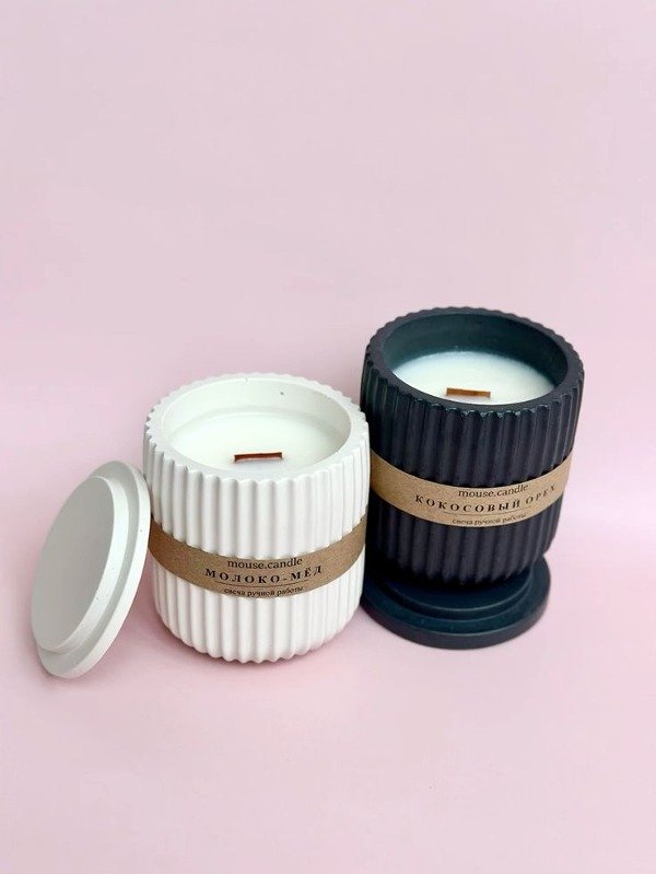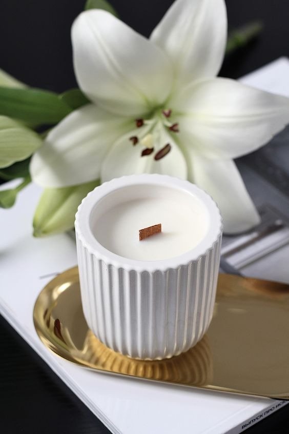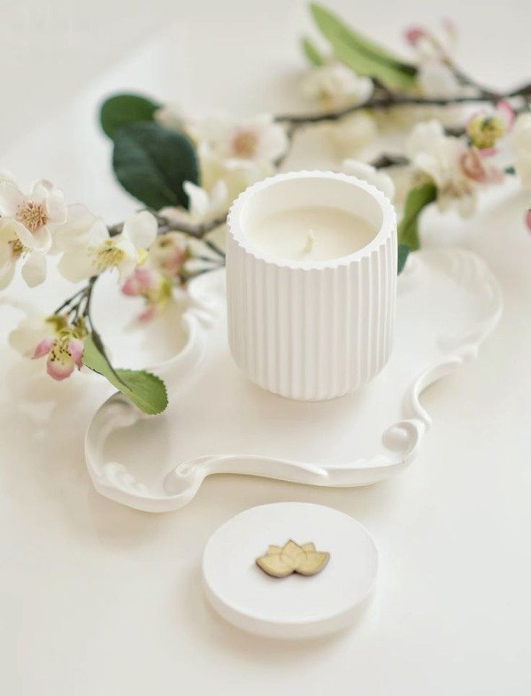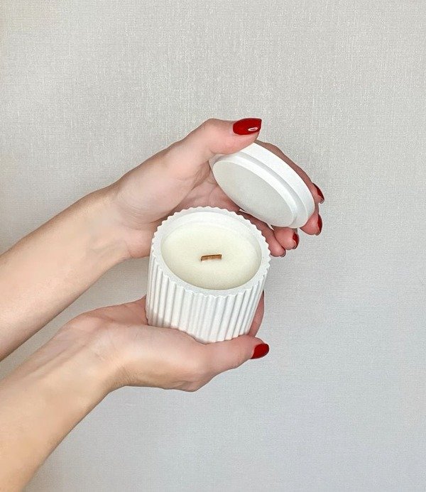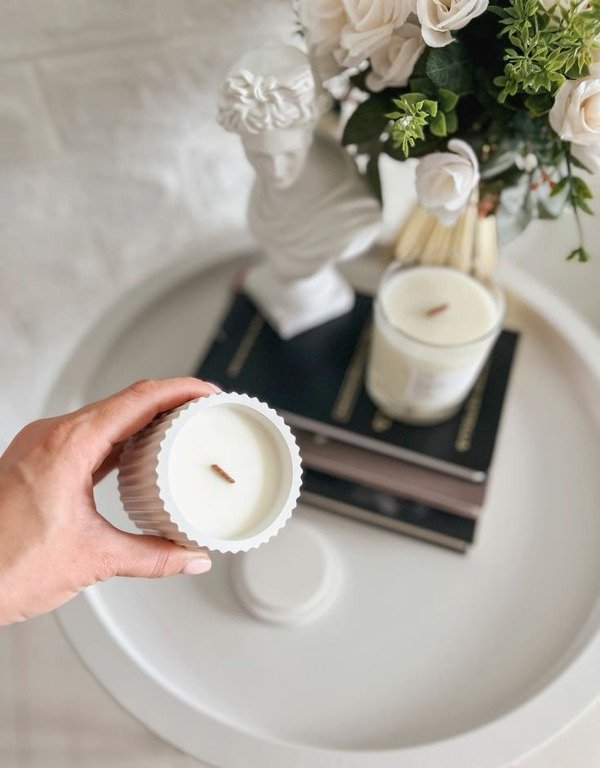 Vela aromatica de soja en recipiente de yeso