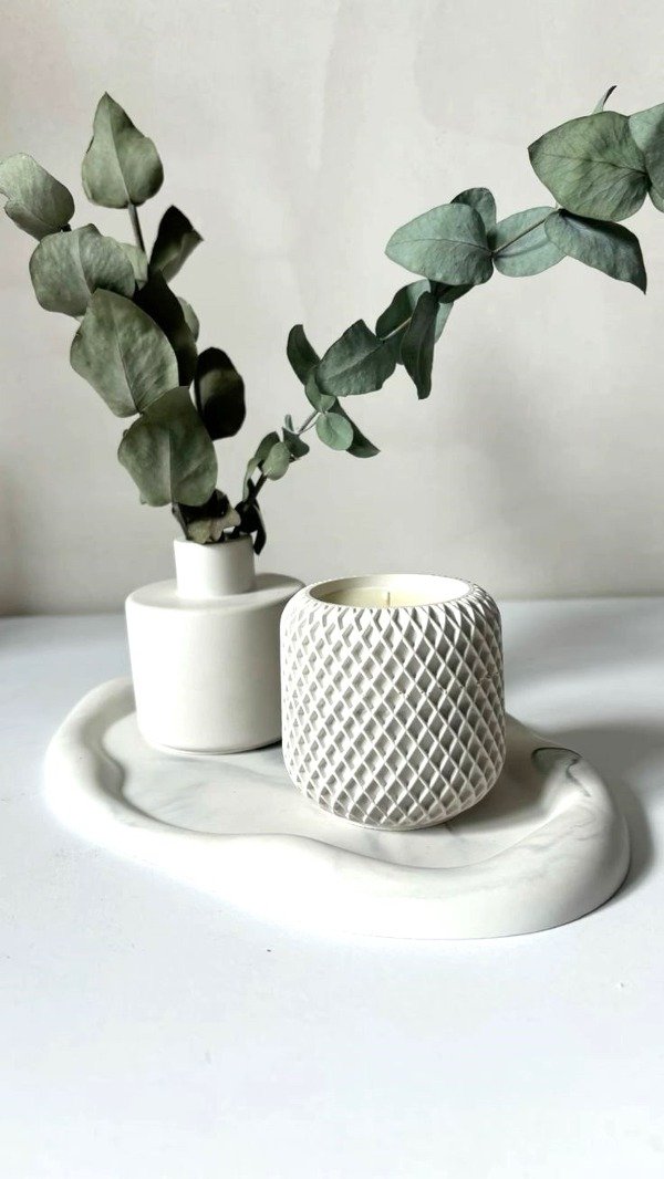 Vela aromática de soja , recipiente de yeso impermeabilizado