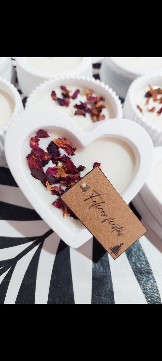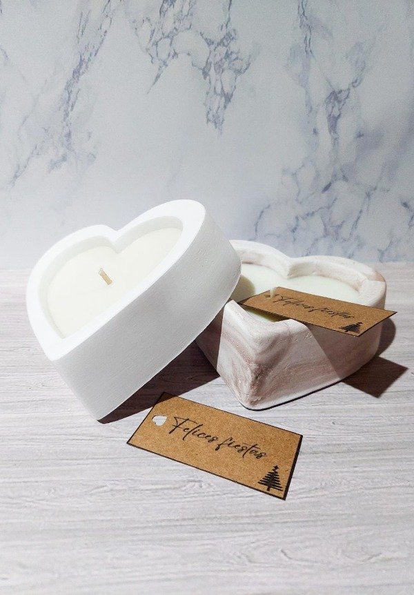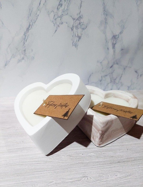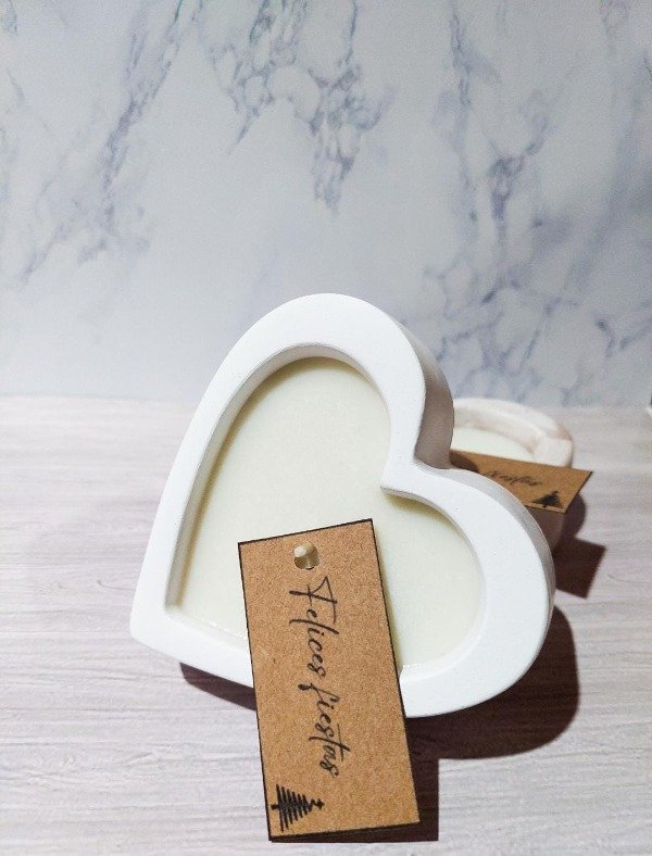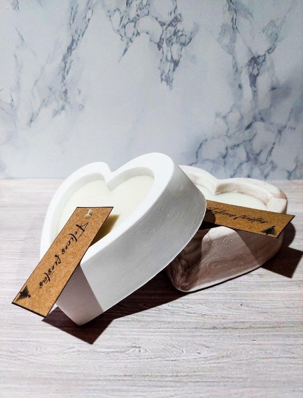 Vela aromática de soja en recipiente de yeso impermeabilizado , en forma de corazón