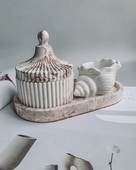 VELA AROMATICA DE SOJA EN CARAMELERA DE YESO CERAMICO.