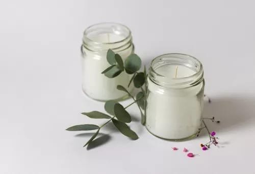 Vela aromatica de soja en recipiente de vidrio